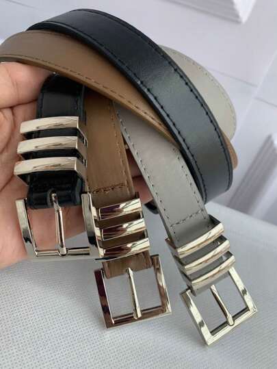 Silver Buckle Belt With Stitching And Loop With 3 Modern Casual And - 鏽棕色 - 查看 1