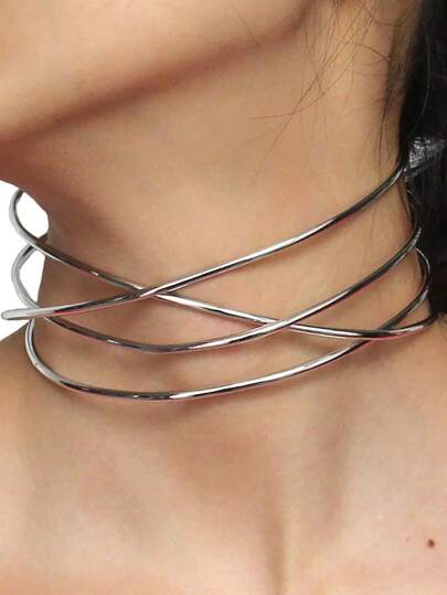 銀色合金扭矩項鍊女士時尚幾何項圈Choker項鍊新款 - 銀色 - 查看 1