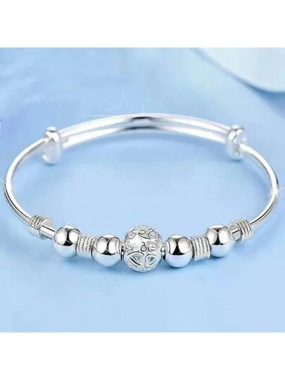 925 银饰幸运珠手镯女士手链时尚派对婚礼订婚流行品牌珠宝 - 銀色 - 查看 1