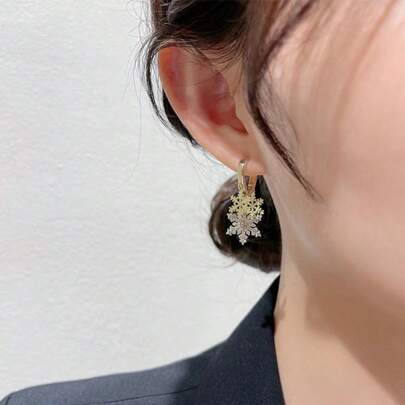 简约优雅的耳钉,百搭时尚的环形耳环,复古美学女士耳环 - 雪花耳圈 - 查看 1