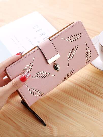 簡約金色鏤空葉子錢包大容量零錢包情人節多功能手拿包 - 粉色 - 查看 1