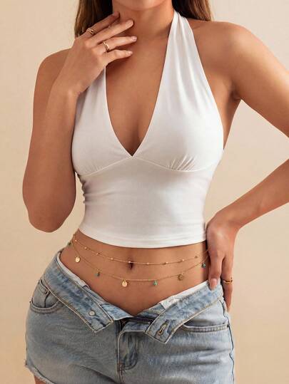 Sirith 欧美时尚饰品,简约性感透明水晶腰链,迷人比基尼身体链镶钻腰链(手工剪裁,长度可定制,仿珍珠数量不固定)秋季,万圣节