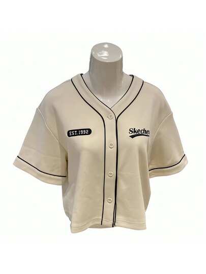 Skechers 舒适宽松针织棒球开衫 - 白色 - 查看 1