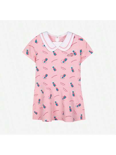 Skechers 女童领字母印花休闲度假日常连衣裙 - 粉色 - 查看 1