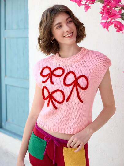 Skyraze 女士复古蝴蝶结宽松厚针织毛衣,灰色 - 灰色 - 查看 5