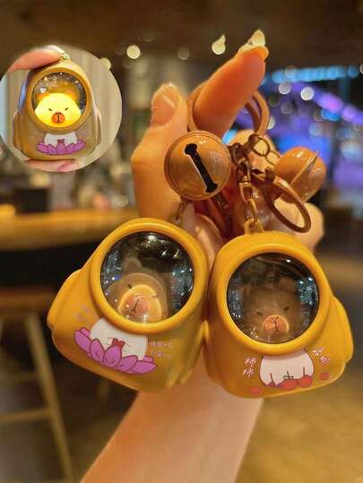 1 件卡通水豚夜灯钥匙扣,可爱夜光海豚包包吊坠,氛围灯钥匙扣,太空舱,送给朋友的完美礼物,汽车配件包包挂饰,适合学校哥特 Y2k 背包 - 彩色 - 查看 2