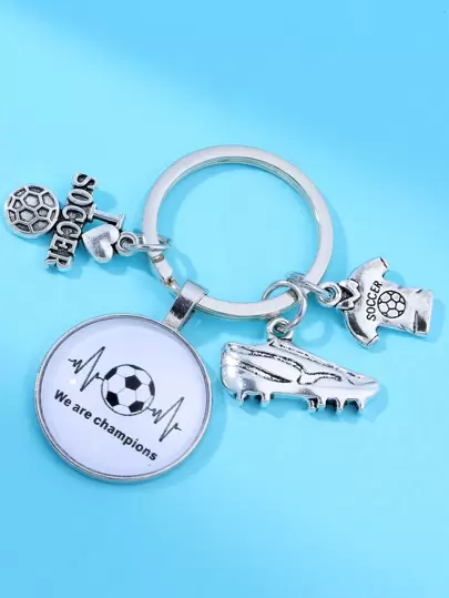 標語圖案圓形和足球球衣吊墜鑰匙圈 - 銀色 - 查看 1