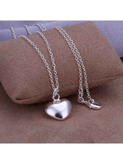 小号纯色心形吊坠项链饰品银色 16-30 英寸 O 型链 女士婚礼饰品时尚珠宝 - 銀色 - 查看 1