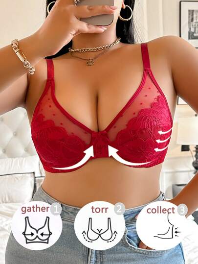 Snug Zone 大码女式蝴蝶装饰时尚性感蕾丝内衣 - 酒紅色 - 查看 1
