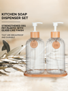 GAONLY 2 件 16 盎司皂液器,带竹泵,可再填充式洗手液器,带垂直条纹,优质浴室皂液器,适用于厨房和浴室。万圣节圣诞节礼物家居浴室装饰秋季装饰返校