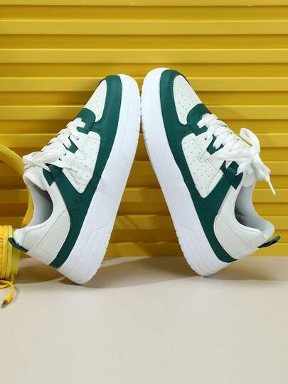 男士软底白色运动鞋,百搭运动鞋,白色带绿色拼接休闲滑板鞋,非常适合节日礼物或派对/街头穿着 - 白綠 - 查看 1