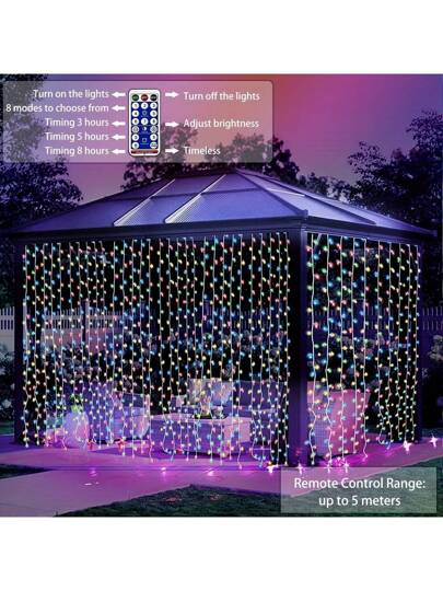 Solar Curtain Lights Remote Control, Outdoor Garden Lights 300 LED 8 Modes Remote Control Waterproof Solar Waterfall Fairy String Lights Decoration For Patio Garden Party Wedding (Multi-Color)
