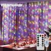 1条3米长100/200/300颗LED窗帘灯串,USB供电,适合悬挂在窗帘上作为装饰灯,8种灯光模式,带遥控器,适用于房间、派对、白色墙面装饰以及圣诞节、万圣节、感恩节、返校季等节日。