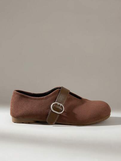 Solecia 女士休闲百搭通勤搭扣平底鞋 - 咖啡棕 - 查看 1