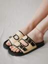 Solecia 女士鞋履春夏新款金属扣铆钉拖鞋圆头厚底露趾休闲百搭厚底凉鞋女士沙滩装圣诞节