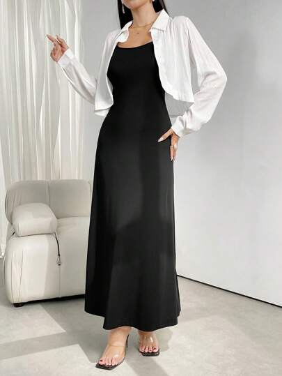 Mulvari 實心釦前襯衫搭配裙子,適合日常穿著 - 黑與白 - 查看 1