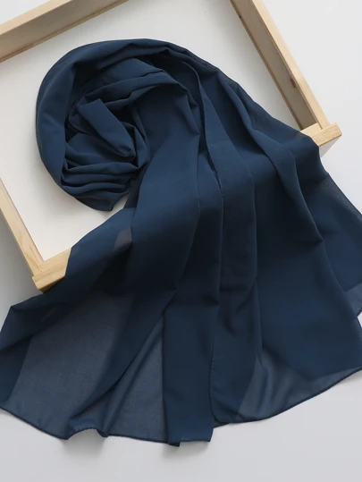 1條素色縐綢圍巾,適用於日常休閒生活 - 藏蓝色 - 查看 1