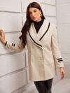 SHEIN Lady 女士纯色翻领长袖双排扣休闲长款羊毛大衣,秋冬