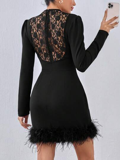 EURMUSE 女款純色流蘇下擺修身連身裙 - 黑色 - 查看 1