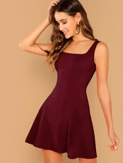SHEIN Privé 合身和傘狀纯色背心式連衣裙 - 酒紅色 - 查看 1