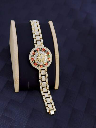 旋转赌场轮盘镀金表链手链粗链 - 金色 - 查看 1