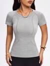 Dewbera 女士休闲透气插肩袖修身运动T恤,夏季无缝衬衫健身衫