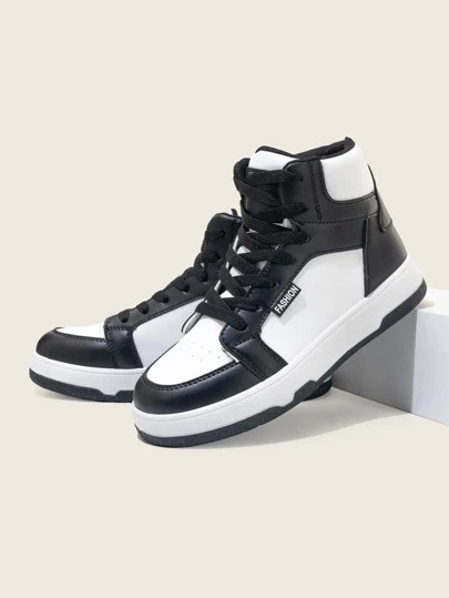 女士户外撞色平底运动鞋,高帮复古风休闲鞋,百搭各种服饰,提升时尚休闲造型 - 黑與白 - 查看 1