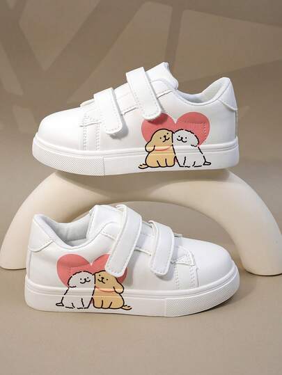 春秋新款儿童卡通魔术贴运动鞋,女童运动鞋,厚底休闲鞋,男童防滑白鞋,校园学生跑步鞋,幼儿及婴儿鞋 - 白色 - 查看 1