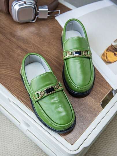 春季新款时尚儿童百搭圆头金属扣一脚蹬乐福鞋 - 綠色 - 查看 1