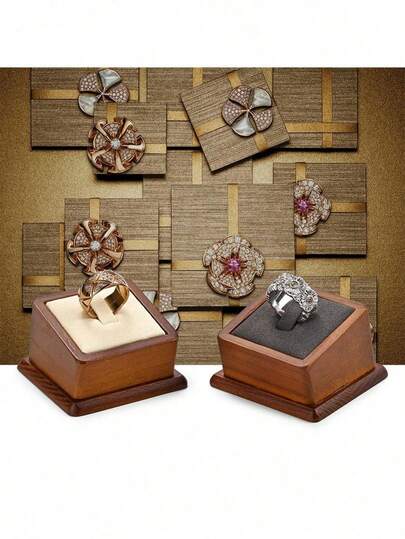 方形实木高档天鹅绒首饰收纳架,防刮耐用,防震稳固,戒指展示架,耳环架,母亲节礼物