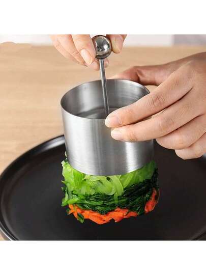不锈钢可调节蛋糕圈模具(带推杆)、慕斯蛋糕模具、挞圈、寿司模具、开胃菜摆盘模具、烘焙工具、厨房小工具、烹饪用具 - 彩色 - 查看 1