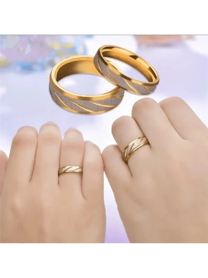 不鏽鋼金色波浪紋情侶戒指,男女婚禮訂婚珠寶禮物 - men - 查看 1