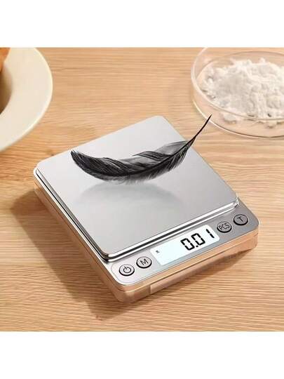 Stainless Steel Digital Kitchen Scale With LCD Display, Accuracy Ranging From 0.1 Grams To 3000 Grams, Comes With 2 Fruit, Jewelry, And Food Weighing Trays, Battery Powered (AAA), Jewelry Weighing | Stylish Design | Sturdy And Durable