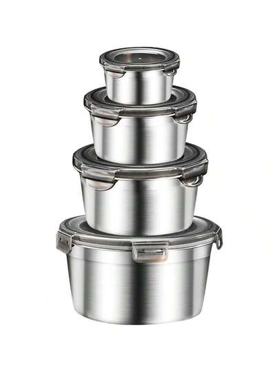 Stainless Steel Food Containers With Lids 4 Pack Metal Food Storage Container Set Meal Prep Containers Reusable Leak-Proof Bento Lunch Box Dishwasher & Freezer  330ml+550ml+950ml+2000ml - 預設 - 查看 1