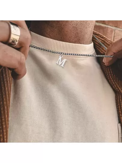 不銹鋼最初項鍊男士盒鏈條吊墜項鍊適合男士 - 銀色 - 查看 4