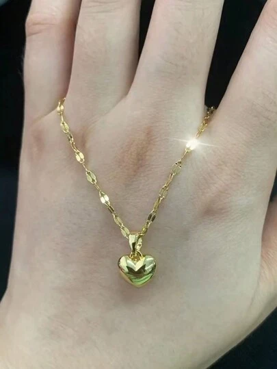 不銹鋼項鍊時尚優雅的復古桃心吊墜項鍊,適用於宴會禮物女士飾品 - 金色 - 查看 1