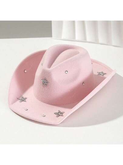 Star Western Cowgirl Hat For Women And Men Elegant Wide Brim Rhinestone Formal Western Cap For Daily Life And Party