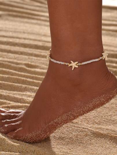 海星裝飾串珠腳鏈 - 彩色 - 查看 10