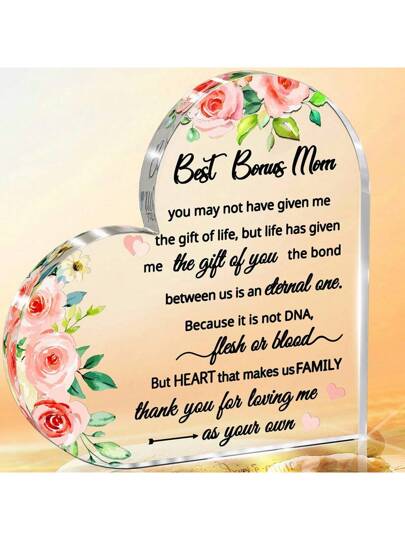 繼母禮物想法,第二任母親禮物,繼女,繼子到我的另一個母親禮物,繼母禮物透明亞克力心形紀念紙重,母親節生日禮物