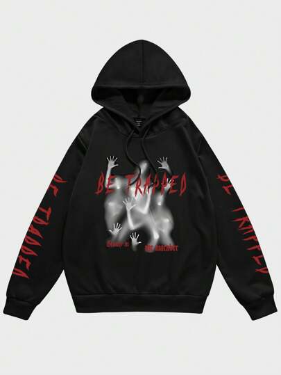 Street Life 男士字母印花抽繩休閒連帽長袖運動衫