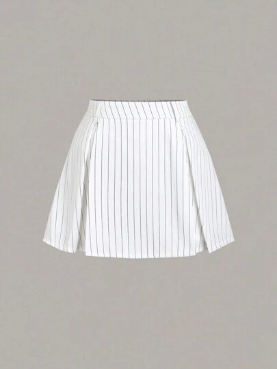 Sweetra 條紋印花褶皺半身裙 - 白色 - 查看 1