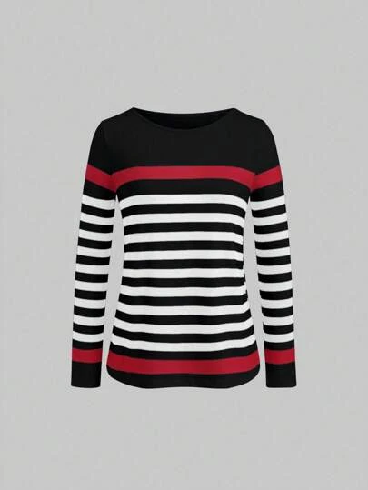 EMERY ROSE 条纹印花T恤,新年服装,图案T恤,女式上衣 - 紅色 - 查看 1