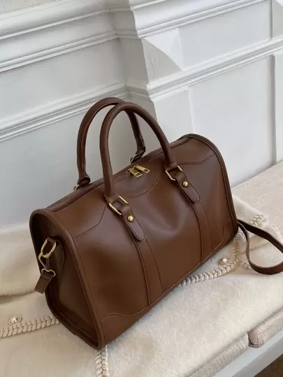 铆钉细节行李袋 夏季沙滩包 返校旅行包 度假旅行必备品 露营健身包 夏季度假配件 巡航必备品 徒步旅行旅行收纳包 医院包 露营旅行配件 - 咖啡棕 - 查看 2