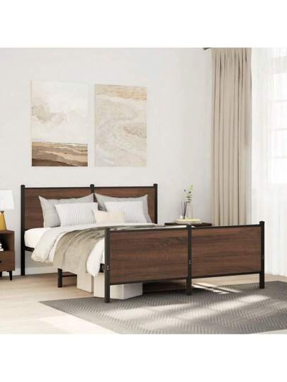 Sturdy Brown Oak King Size Metal Bed Frame 150x200 Cm Modern Design - 棕色 - 查看 1