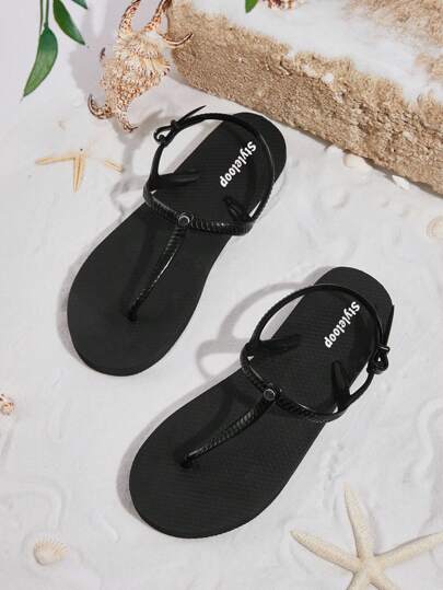 Styleloop 女士平底凉鞋,波西米亚风格西部音乐节派对海滩度假装 - 黑色 - 查看 1