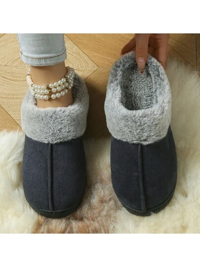 女士绒面革保暖内衬厚毛绒舒适防滑家居拖鞋(建议订购大一码)
