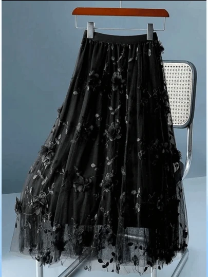 6. Summer Three-Dimensional Floral Elegant Tulle Skirt