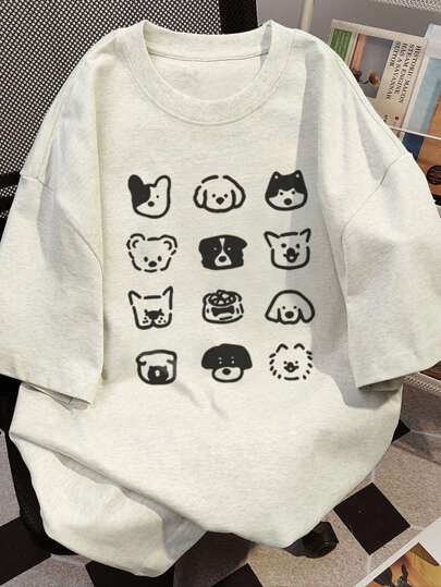 夏季休闲动物印花短袖T恤 - 淺灰色 - 查看 1