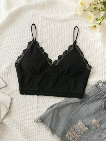 Soleia 夏季時尚v領蕾絲拼接背心上衣 - 黑色 - 查看 1