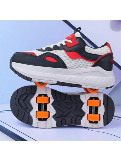 夏季 LED 发光轮滑鞋四轮,时尚透气低帮运动鞋,适合青少年和成人情侣,户外运动滑冰,可拆卸一鞋两用设计 - 白色 - 查看 6
